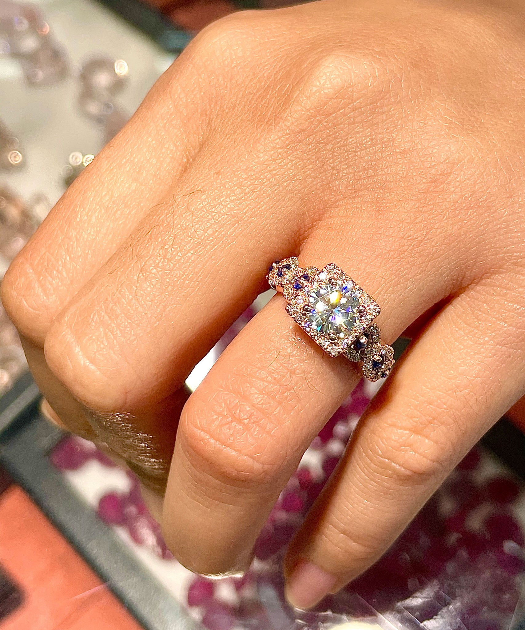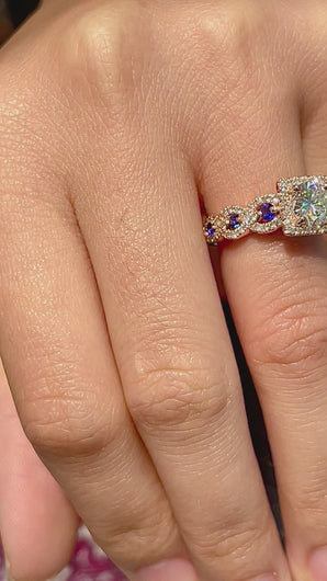 Stunning 2.00 Carat Round Simulated Diamonds And Sapphires Engagement Ring Antique Deco Design Bridal Halo Wedding 14k Solid Rose gold