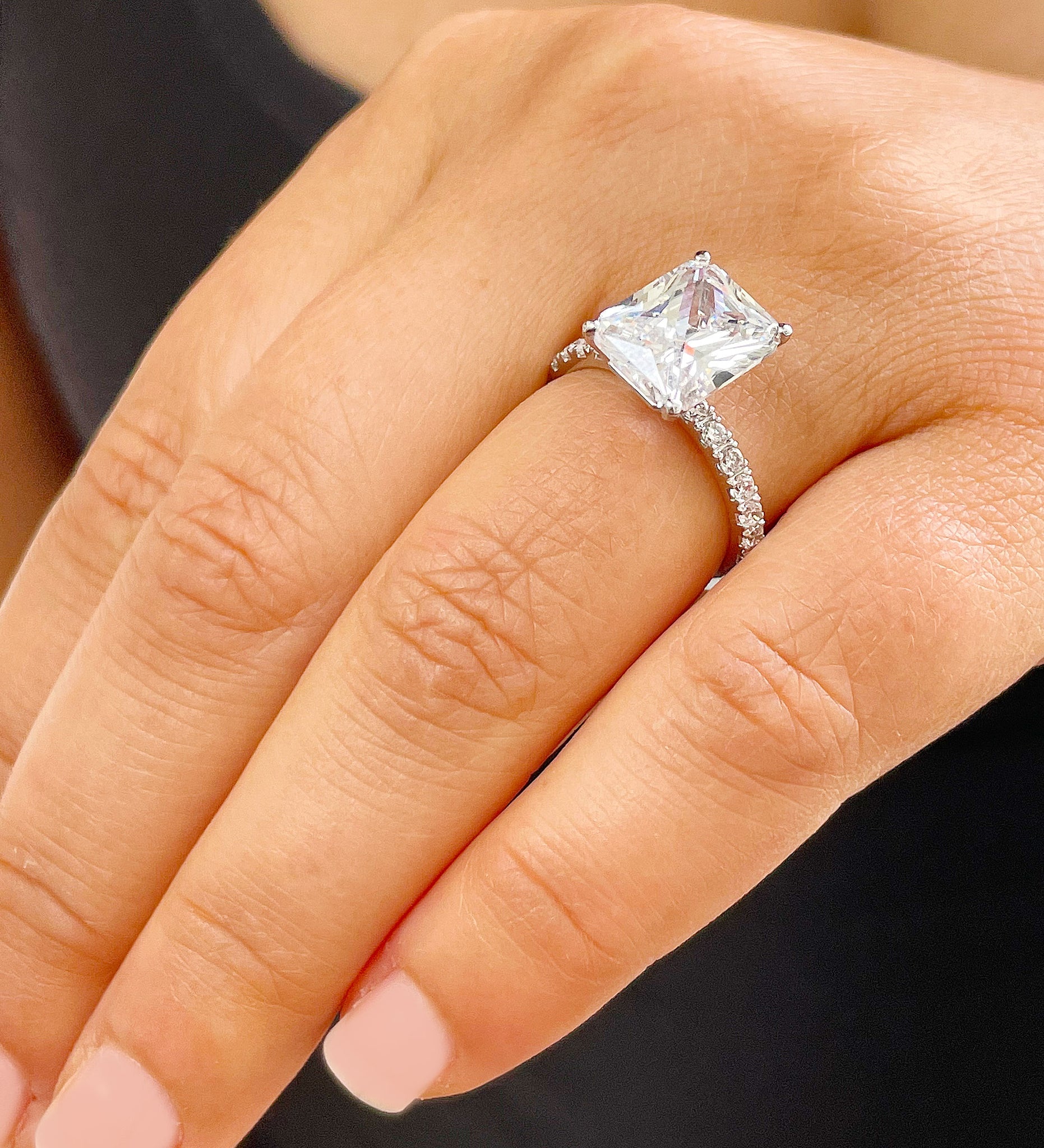 Women's Large 3.80ctw 14k White Gold Radiant Simulated Diamond Engagement Ring, Bridal, Wedding, Anniversary, Prongs, Solitaire Propose