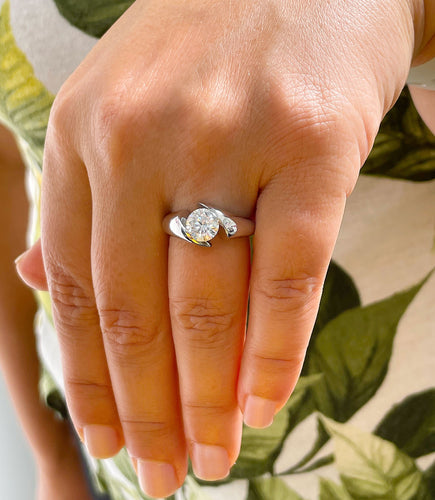 14K Solid And Heavy White Gold Round Cut Simulated Diamond Engagement Ring Semi Tension Set Solitaire Bridal, Wedding 1.00ct