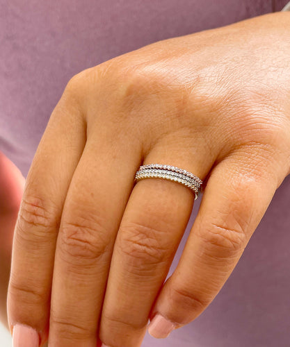 Minimalist Three Piece 14K Solid White, Yellow, And Rose Gold Round Cut Simulated Diamonds Bands 0.25ctw