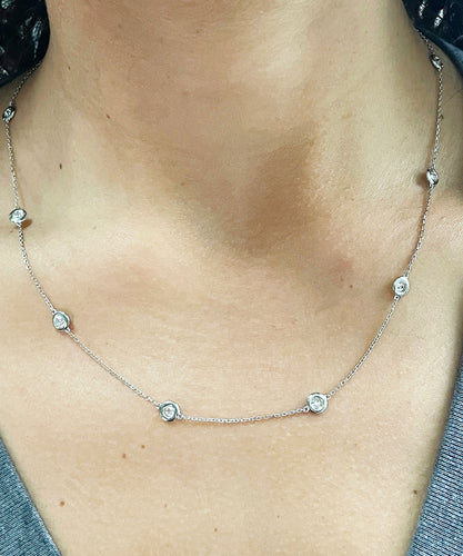 14K Solid White Gold Round Cut Simulated Diamonds Bezel Set Necklace Pendent Diamonds By The Yard Style 2.00ctw