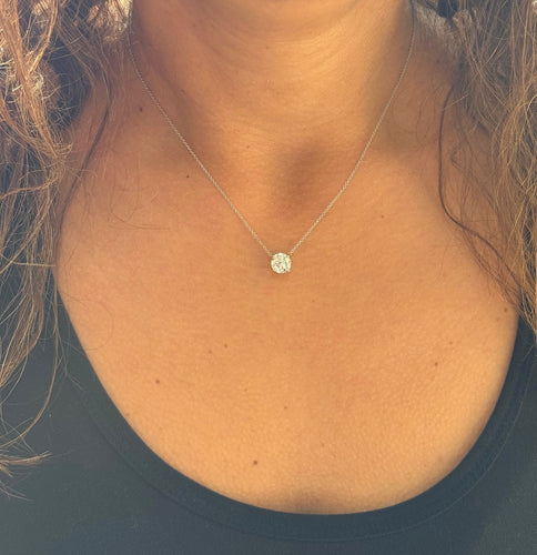 Round Cut Simulated Diamond Solitaire Necklace And Chain Dainty Minimalist Prong Style 14k Solid White Gold Pendant Bridal Wedding Gift 1.50