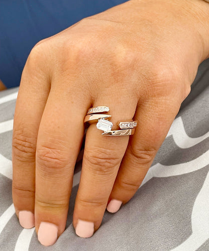 14K Solid And Heavy Rose Gold Emerald And Princess Cut Simulated Diamonds Engagement Ring And Band Semi Tension Set 2.00ctw