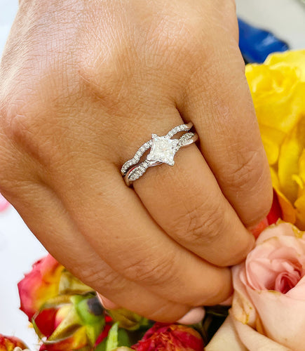 1.75 Carat Princess Cut Simulated Diamond Engagement Ring And Band Bridal Set Wedding 14k Solid White Gold Propose Promise