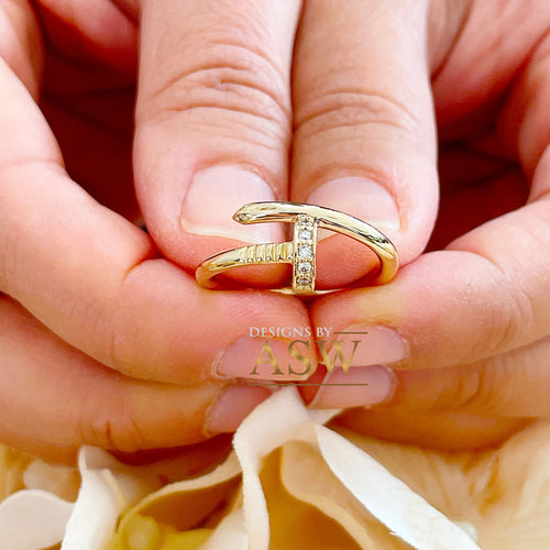 Nail 14K Solid White, Yellow, or Rose Gold Round Cut Simulated Diamonds Band, Engagement Ring Wedding Bridal Anniversary 0.10ctw