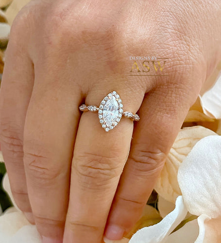 Women's 14K Solid Rose Gold Marquise And Round Cut Simulated Diamonds Engagement Ring Prong Antique Style Filligree Wedding Bridal 1.35ctw