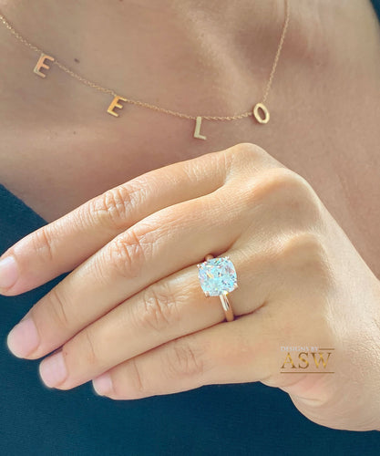 Women's Large FOUR Carat 14k Rose Gold Cushion Simulated Diamond Engagement Ring, Bridal, Wedding, Anniversary, Prongs, Solitaire Propose