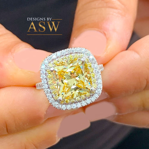 Huge 6.00 Carats 14k Solid White and Yellow Gold Cushion Cut Simulated Fancy Yellow Diamond and simulated Diamonds Engagement Ring Halo
