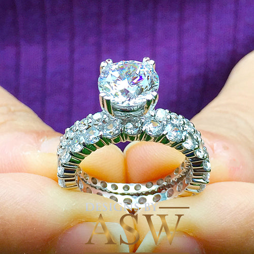 Huge 5.50ct Round Cut Eternity Ring and band, Engagement Bridal Style, Simulated Diamonds, Set in Solid 14k White Gold, Wedding Anniversary